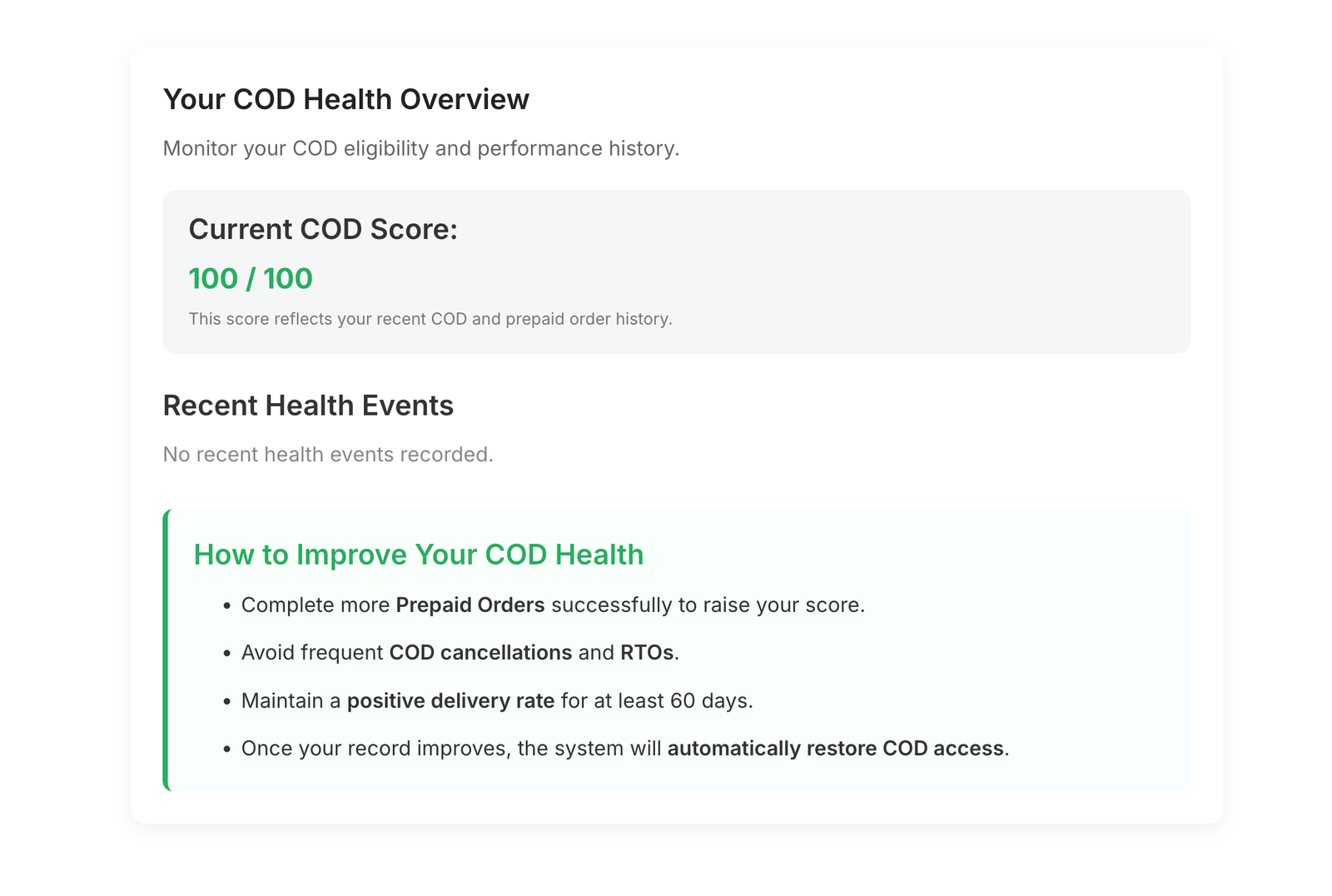 - Easy Monitoring: View detailed order performance, COD scores, and history directly in WooCommerce admin.